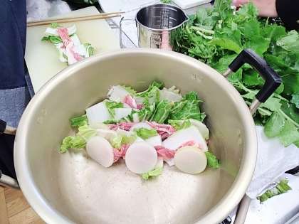 大根と白菜のミルフィーユ鍋の用意をしてます!
