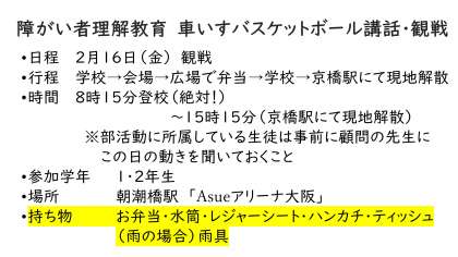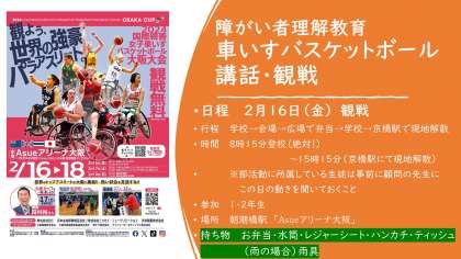 明日の1・2年生車椅子バスケ観戦について【2月15日】