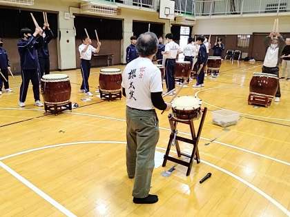 2年生の音楽では毎年恒例となっている『和太鼓』の授業が行われました。
