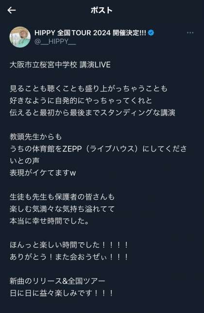 HIPPYさんが、インスタやX(Twitter)を更新してくださってますねー。