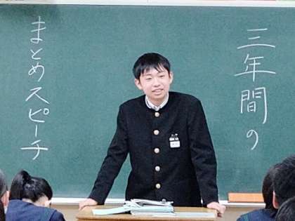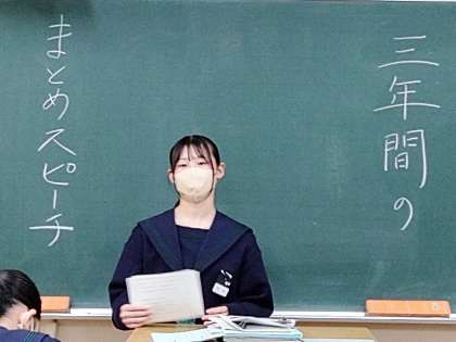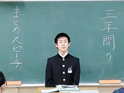 国語の授業では『3年間のまとめスピーチ』を行っています。