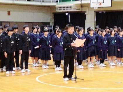 2年生が感謝の気持ちを述べて、歌のプレゼントをしました。