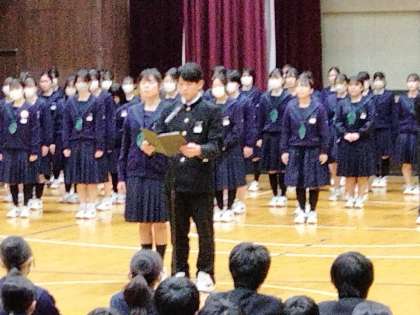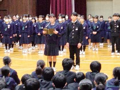 卒業生の代表が在校生に感謝と激励の言葉を述べて、卒業式で歌う『虹』を披露してくれました。