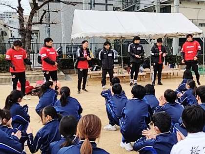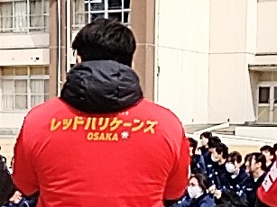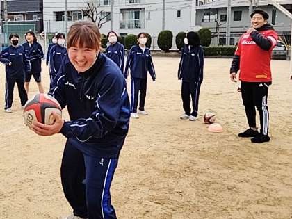 その後はグラウンドで、実際にラグビーボールを使って『ラグビー体験』をしました。