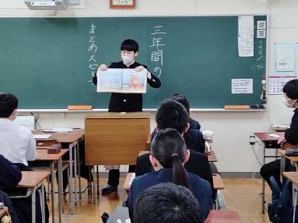 3時間目からは卒業式の練習があるため、この2時間目が『3年間 最後の授業』になります。