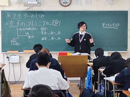 理科の時間では『フレミングの左手の法則』を学んでいます。