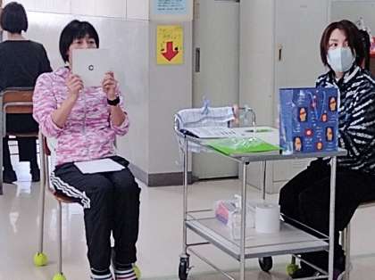 1年生は視力検査をしています。