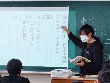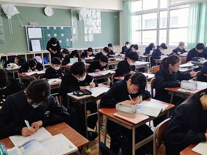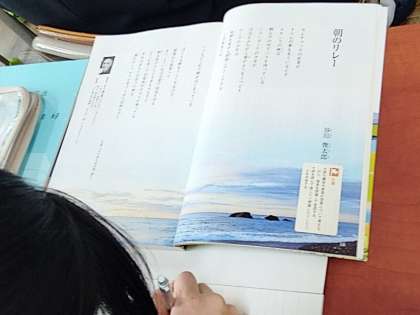 教えられた方法で『朝のリレー』をノートに書き写しています。