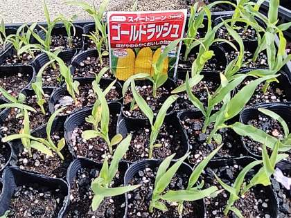 もうすぐ植える予定の『トマト』・『トウモロコシ』・『ナス』も種から育てて大きくなって来ましたよ〜!