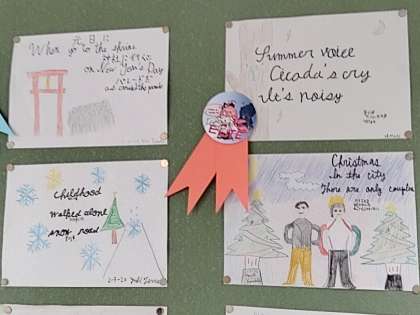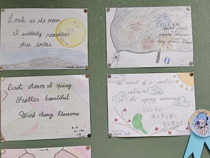 今の3年生が昨年度作った『英語俳句』が、LL教室に展示されています。