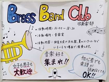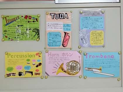 音楽室前には、吹奏楽部の勧誘ポスターが貼ってあります。