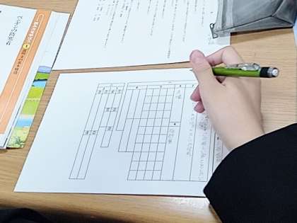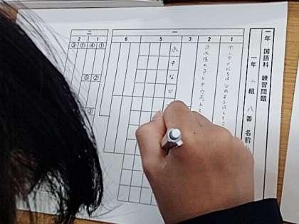 分からない子どもたちは教科書を見ながらですが、【百問繚乱】の練習問題にチャレンジしています。