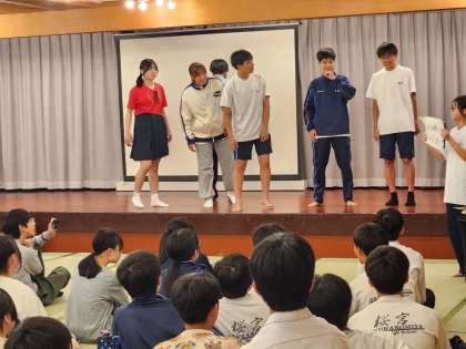 各クラスから精鋭!?5人が、自分のクラスの先生にお題を熱く伝えます!ただしジェスチャーのみ!苦戦する1組!!果たして2組は…!?