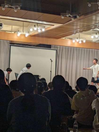 続いてはトリオのコントです!学校の授業を舞台に、生徒役は実名で繰り広げられるコントに、会場は大爆笑。実際にこんな場面があるとかないとか!?