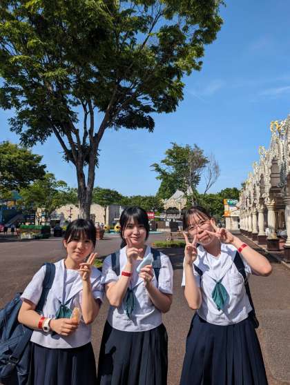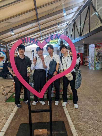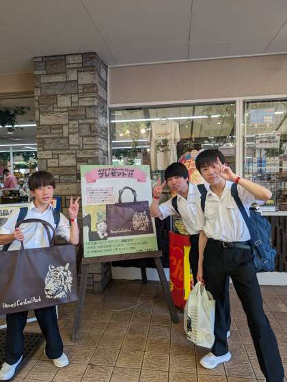 快晴の姫路セントラルパークを満喫中!先生との記念写真もいい思い出です!たくさんおみやげを買った人だけがもらえるオリジナルトートバッグを手に入れた人も!