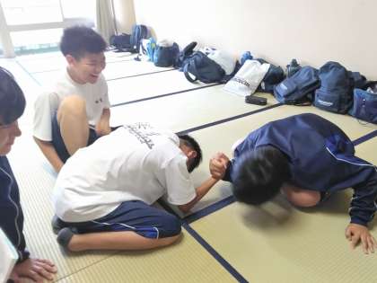 くつろいだり、腕相撲をしたりと楽しそうですね〜。