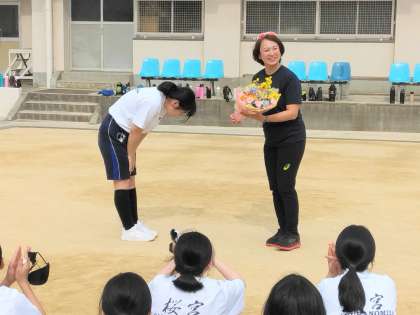 最後は円尾敦子選手に花束を贈り、感謝の言葉を伝えました。