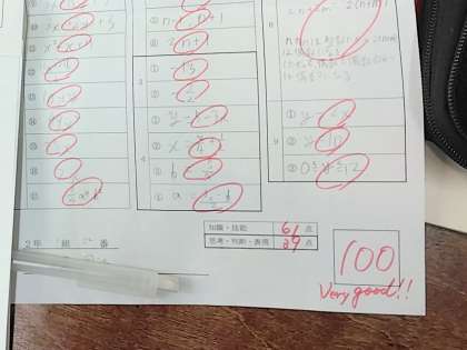 平均点は69点とのことですが、このクラスには100点が2人もいますね〜。