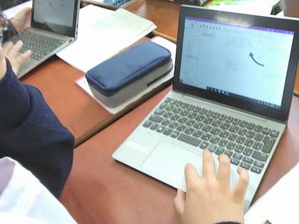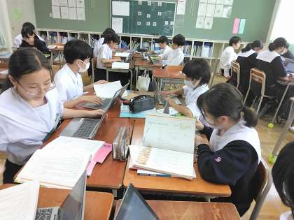 子どもたちは、一人一台のタブレットで一生懸命に何かを打ち込んでいます。