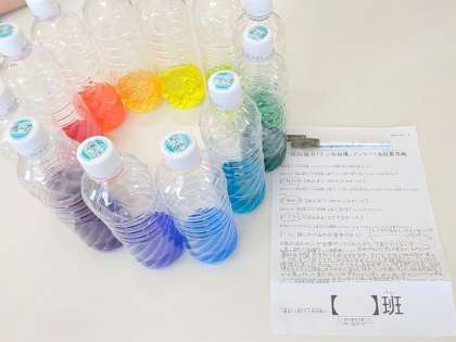 1年生の美術では班で協力して、『十二色相環』を作っています。