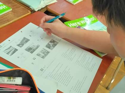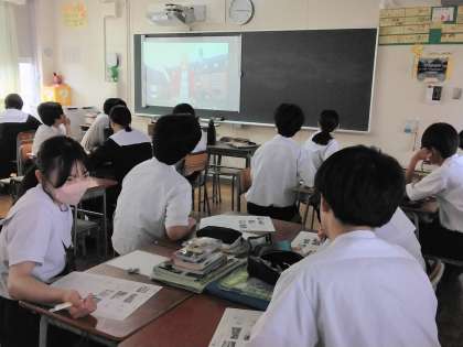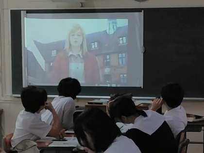 前のモニターから流れる音声を聞き取り、質問に答えています。