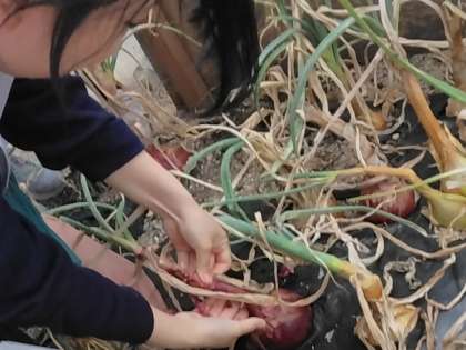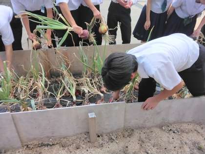 今日は3年生が『玉ねぎの収穫』を行いました。