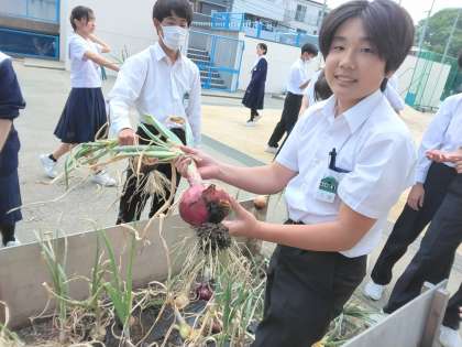 2年生が育てたものですが、収穫のお手伝いをしました。