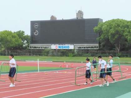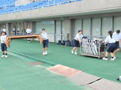係生徒が一生懸命に準備をしています。