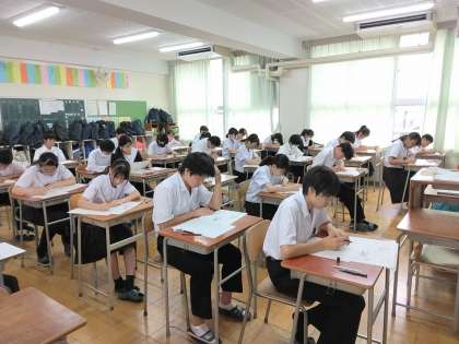 今日は期末テスト2日目です。今は社会科のテストですね〜。
