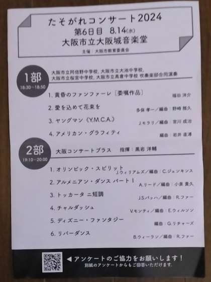 今日は大坂城音楽堂で吹奏楽部が『たそがれコンサート』に出演しました。