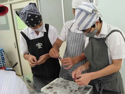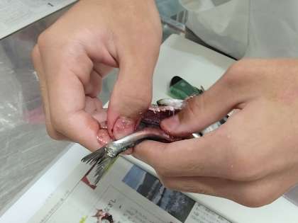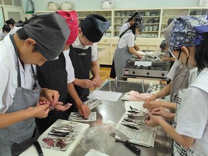 ひとり4尾に挑戦します。綺麗にできた2尾分はかば焼きに、あとの2尾は刻んでつみれにします。