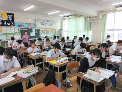 3年生の国語では、上山先生の後に続いて全員で『おくのほそ道』を群読しています。