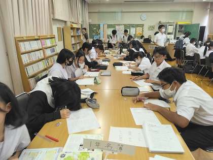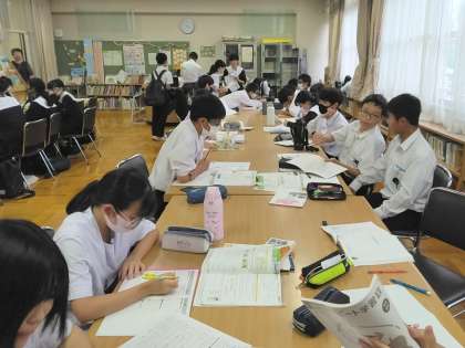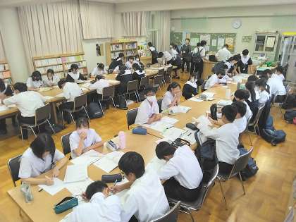 図書室にはたくさんの子どもたちが集まってテスト勉強をしています。