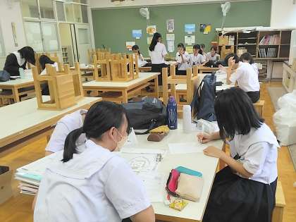 座る場所が無いので、美術室も開放しました。イイネ〜!