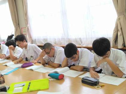 3年生は『文化祭の取り組み』で、舞台発表で行う演劇台本の読み合わせを行っています。