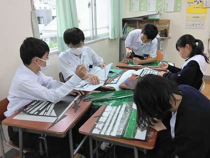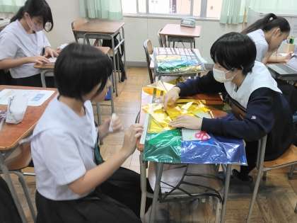 1年生の各教室では『ステンドグラス』づくりをしています。