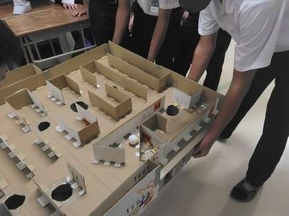 穴だらけの迷路を学習室のみんなで協力して作りました。