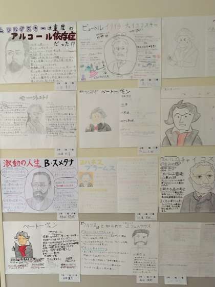 個性あふれる作曲家たちが2年生によって素敵なポスターに!