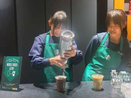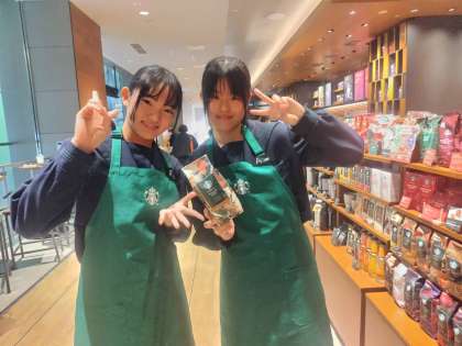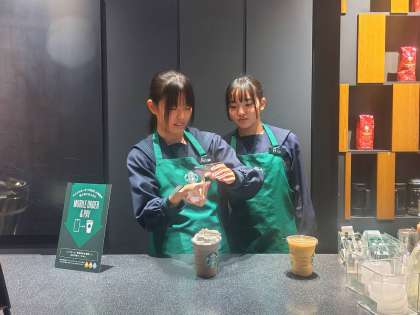スターバックスでは、緑のエプロンを着てお仕事しています!