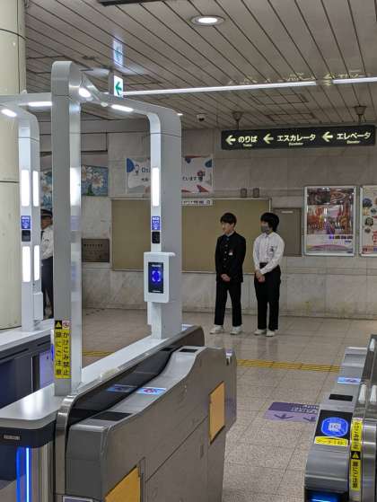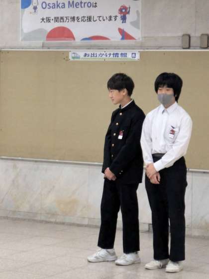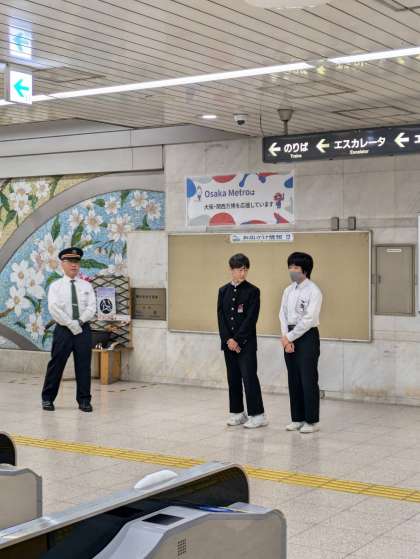 今日は、改札付近で乗客のみなさんに「ご乗車ありがとうございました」とごあいさつです。