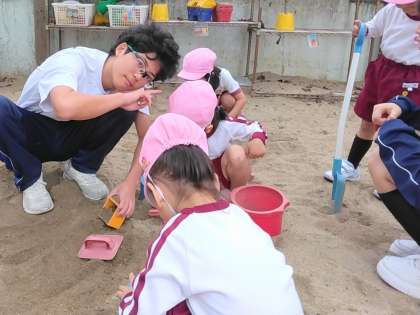砂場で一緒に遊んでいます。