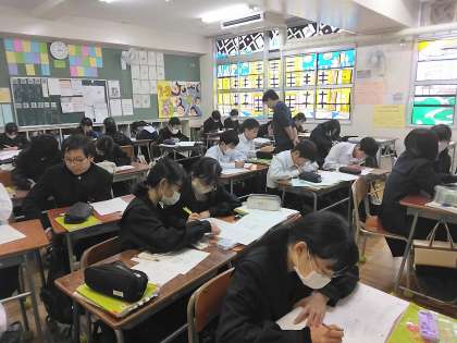 来週の月曜日から期末テストなので、プリント問題に取り組んでいます。