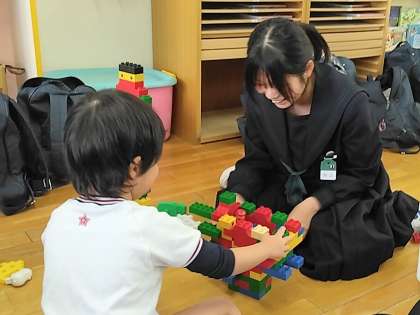 3年生の家庭科では、毎年恒例となっている育生幼稚園での『保育体験』を行いました。