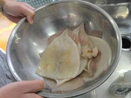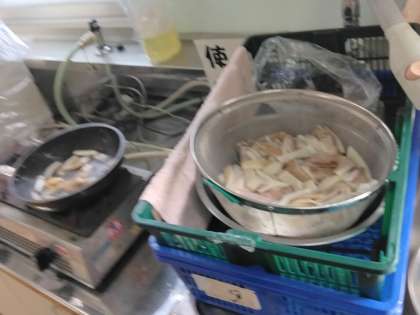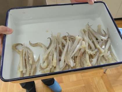 解剖実習に使ったイカは家庭科の仲原先生が調理してくれました。
