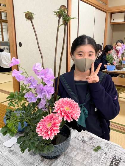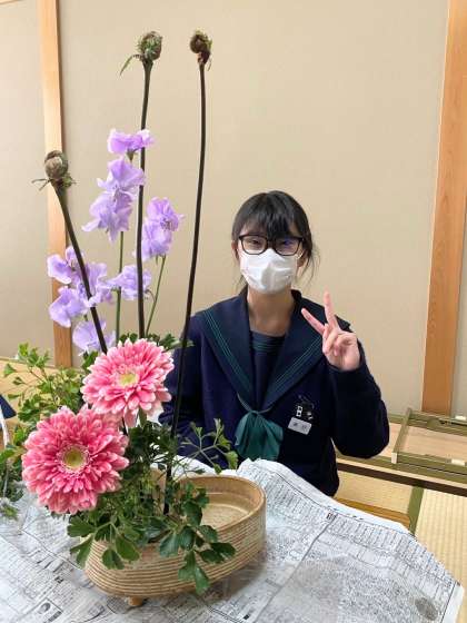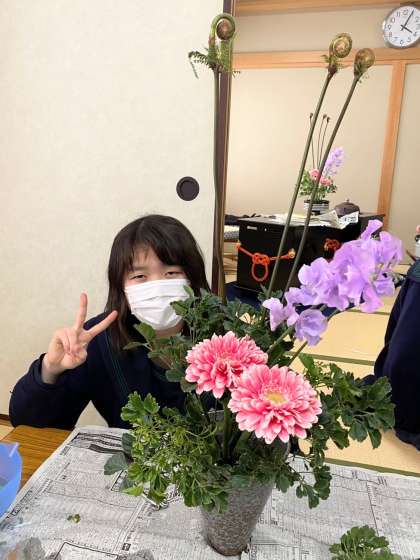 今日の花は「ゼンマイ」「ガーベラ」「スイートピー」「ポリシャス」です。