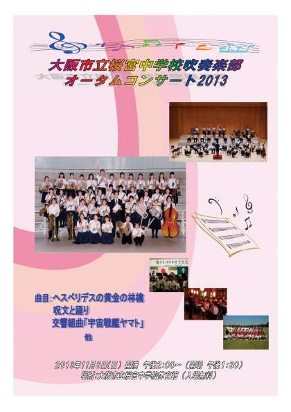 吹奏楽部の定期演奏会「オータムコンサート2013」が開催されます。