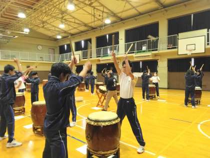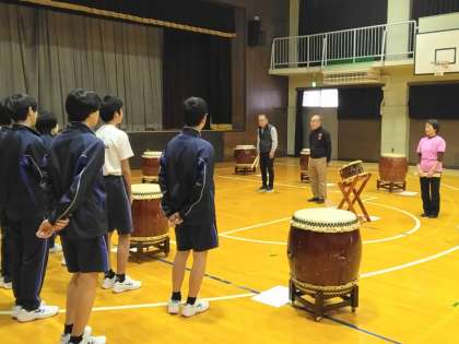 2年生の音楽では『和太鼓』の練習が始まりました。