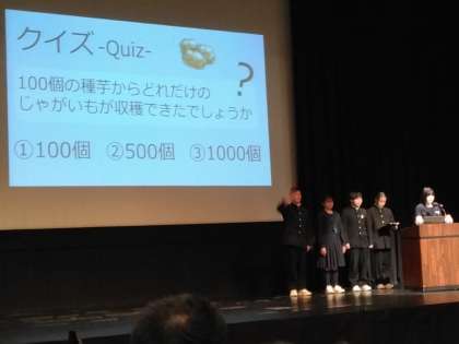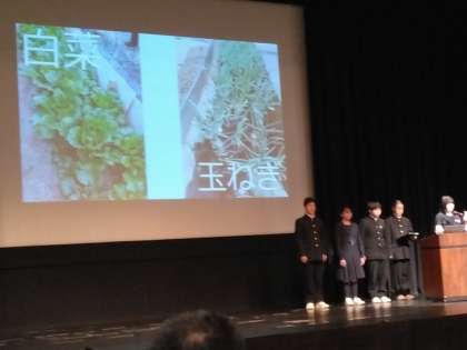 2年生が昨年度から挑戦している『さくらのみや農園』について発表しました。
