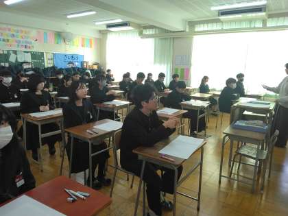 開始のチャイムを待つ、2年生の各クラスの様子です。