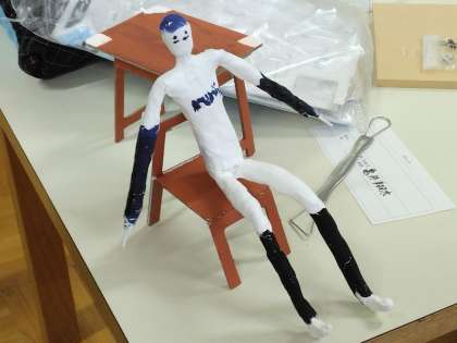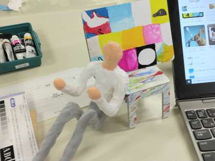 3年生の美術では『3年間のキセキ』というテーマで、【椅子】・【机】・【人間】を作って表現しています。